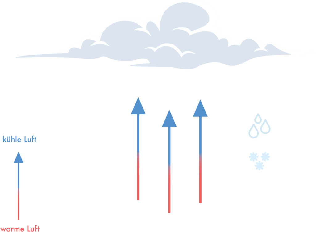 Wie entstehen denn nun eigentlich Wolken? Ganz einfach! Warme Luft steigt ganz natürlich nach oben. Dabei wird sie kühler und der unsichtbare Wasserdampf in der Luft wird zu winzigen Wassertröpfchen oder Eiskristallen. Diese kleinen Tröpfchen sammeln sich und bilden eine Wolke. Stell dir vor, die Wolke ist wie ein weiches Kissen aus vielen kleinen Tröpfchen, welche im Himmel schweben. Spannend, oder?