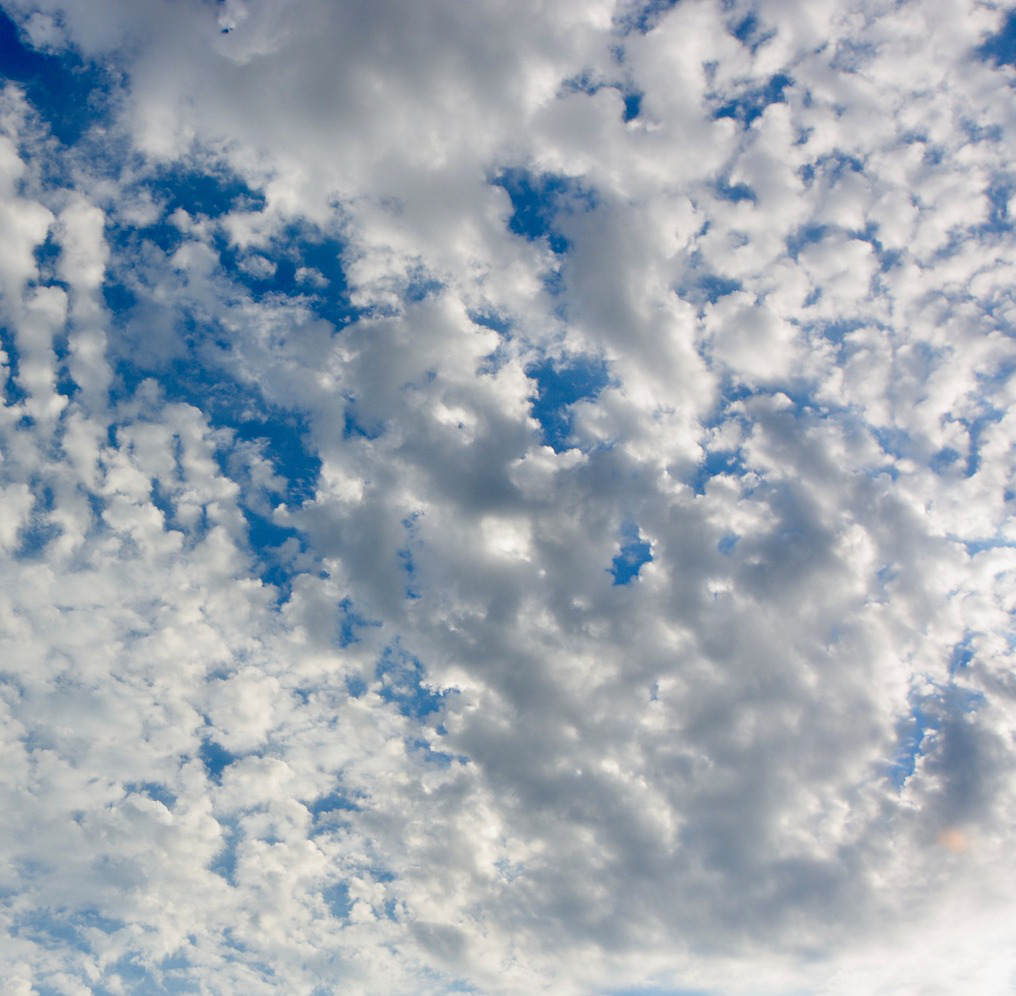 Die Altocumulus-Wolke sieht aus wie ein großes Feld aus vielen kleinen, weißen Wölkchen am Himmel! Diese Wolken erscheinen oft als ausgedehntes Muster, das aus vielen einzelnen, kleinen Wolken besteht, die wie ein Teppich den Himmel bedecken.